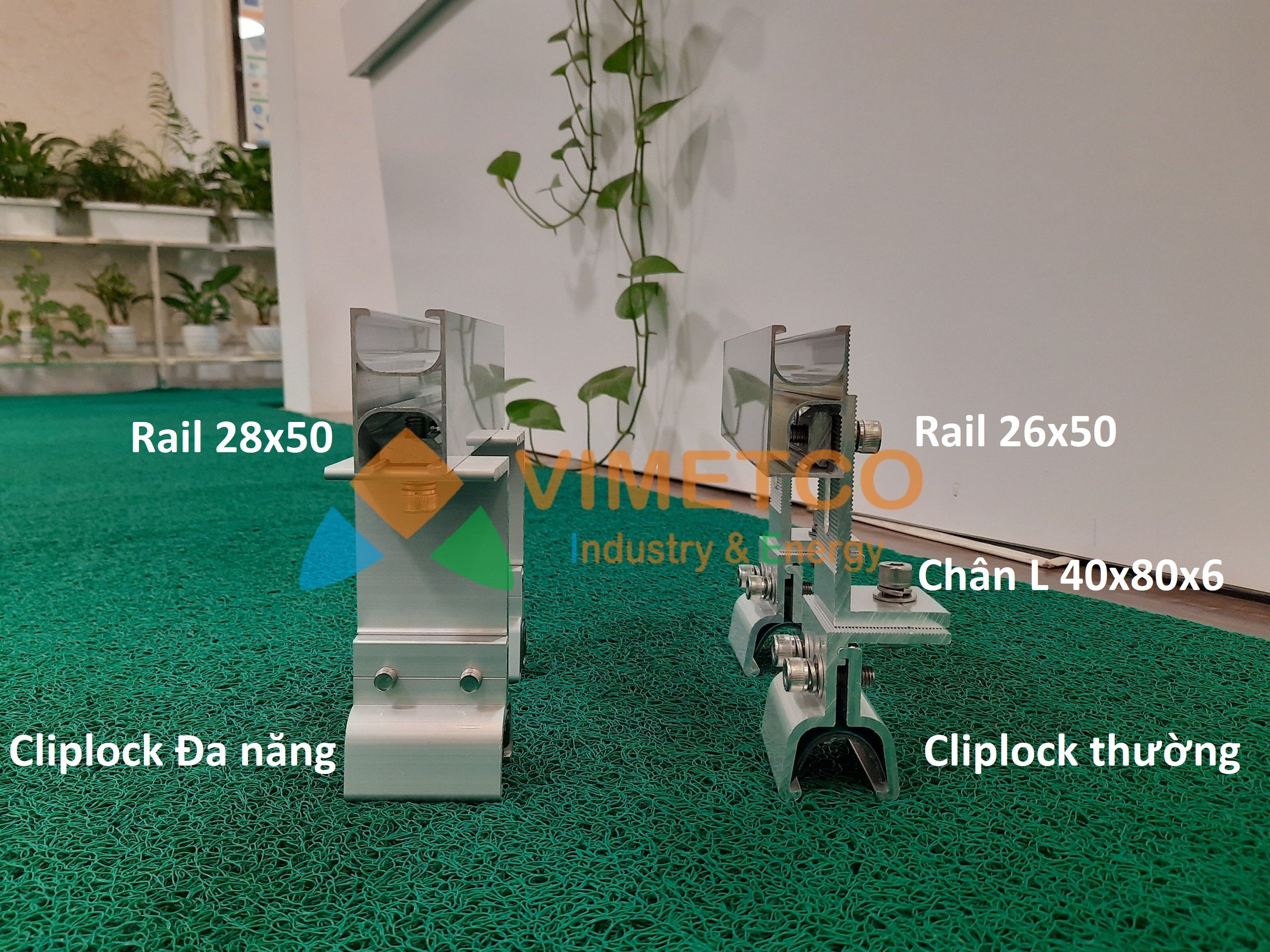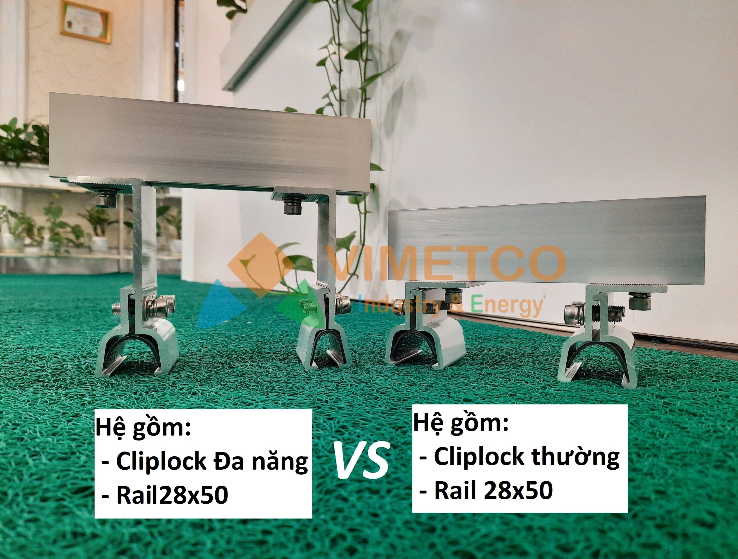 So sánh chiều cao giữa Hệ Cliplock Đa năng + Rail 28x50 và Hệ Cliplock thường + Rail 28x50